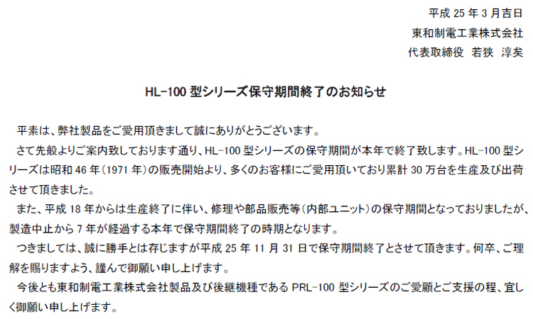 HL-100系列阻旋式料位開關(guān)停產(chǎn)說明